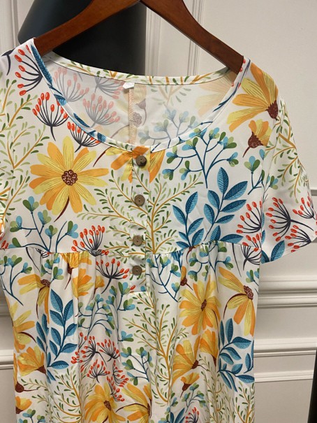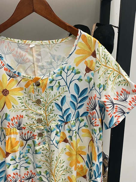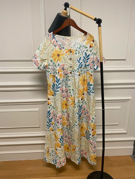 Step into the garden of style with our floral print short-sleeved dress! This delightful piece features button detailing and handy pockets, suitable for both everyday casual wear and vacation adventures. Offering tummy coverage functionality, it's a versatile must-have that blooms with charm and practicality!